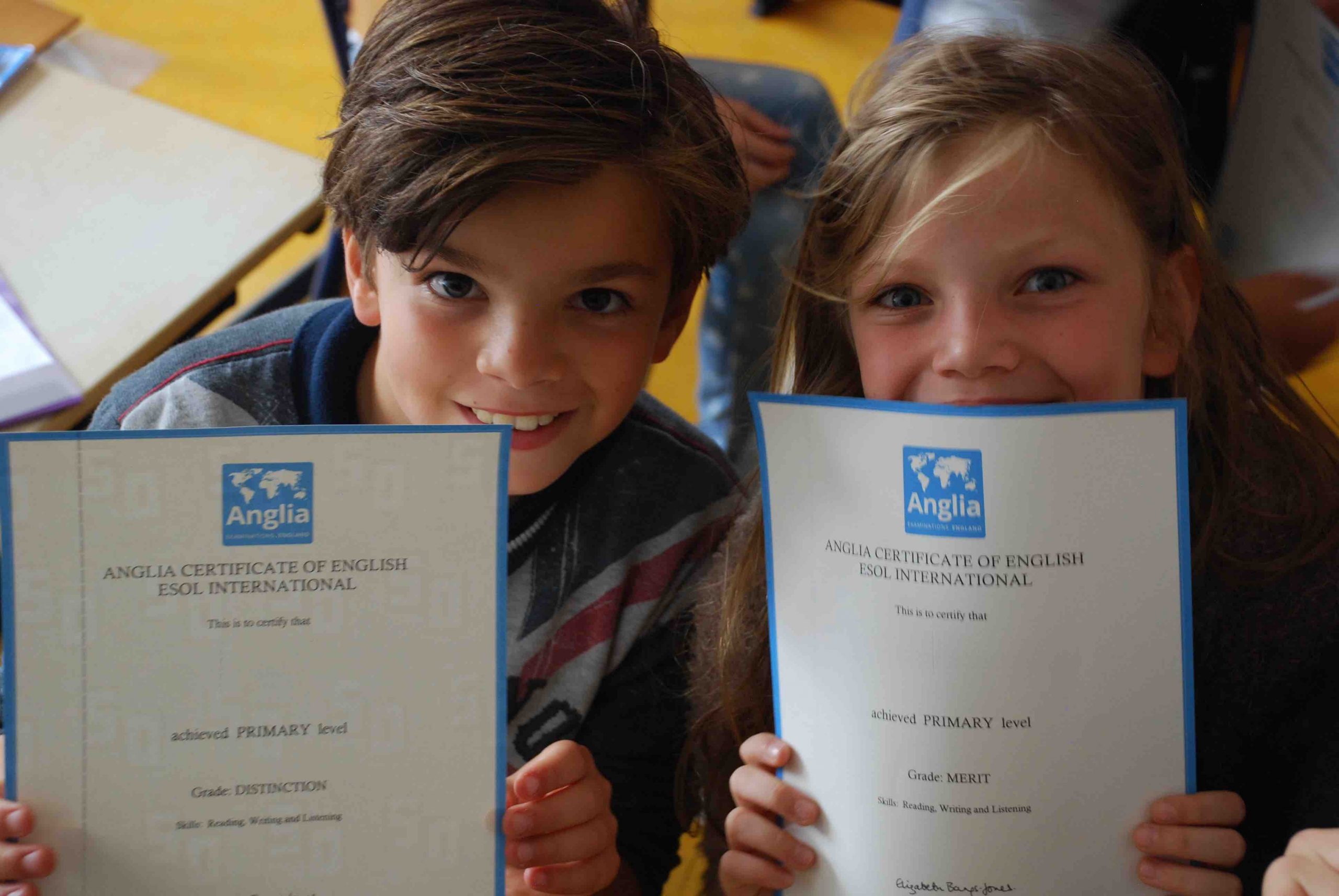 Weet je dat ik al vanaf groep 4 Anglia certificaten ‘spaar’? Onze school doet elk jaar mee aan dit internationale examen. Dan maak je een Engelse toets op je eigen niveau en die wordt dan helemaal naar Engeland gestuurd om daar te worden nagekeken!